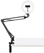 Het statief heeft een functie voor het aanpassen van hoogte en breedte, waardoor het nog comfortabeler in gebruik is. Het is gemaakt van metaal, dus het is sterk en duurzaam. Dubbele veren op elke arm van de giek beschermen de lamp tegen vallen. De flexibele montagebeugel kan worden gebogen en gevouwen om de kijkhoek zo goed mogelijk te maken. De basisklem is compatibel met elk aanrecht van verschillende dikte. Dit houdt je handen vrij en je kunt gemakkelijk video's maken.