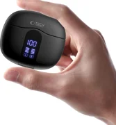 Het LED-scherm in de behuizing geeft het huidige oplaadniveau van de hoofdtelefoon en batterij aan, zodat je altijd weet wanneer het tijd is om bij te vullen.