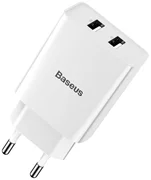 De intelligente Baseus-oplader past automatisch de spanning aan het apparaat aan dat het werkt, waardoor de batterij wordt beschermd tegen overladen en overspanning. Het heeft twee ingangen waarmee u twee apparaten tegelijkertijd kunt opladen.