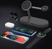 Met Tech-Protect multifunctionele inductielader kunt u drie apparaten tegelijkertijd of volledig afzonderlijk opladen: iPhone met MagSafe, Airpods en Apple Watch. Eenvoudig, maar functioneel ontwerp afgewerkt in een mat oppervlak geeft het een zeer esthetische uitstraling.