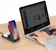 UNIQ Vertex - Opvouwbare, snelle, 15W draadloze inductielader. Geniet van eenvoudig opladen met Vertex, een draadloze oplader die de regels van functioneel ontwerp overtreedt. Ontworpen voor maximaal comfort. Het eenvoudige vouwmechanisme en het ontwerp met 3 spoelen maken naadloos laden mogelijk: horizontaal, vlak, verticaal onder verschillende hoeken - vrij zonder concessies te doen aan stijl. Gemaakt met een unieke getextureerde afwerking, aangenaam om aan te raken. De Vertexlader biedt een slim en elegant element op elke werkplek, waar u hem ook plaatst. Specificatie: Vermogen: 15W (max) Ingang: (QC/PD): 5V/2A, 9V/1.8A Uitgang 1:5 W/7.5W/10W (max) Uitgang 2:5 W (max) Efficiëntie: 75% Afmetingen: 70x133,5x15mm Gewicht: 208 g. Inclusief: 1x Vertex Duo 2in1 inductielader 1x USB-A/USB-C-kabel (1 m) 1x USB-C/USB-C-kabel (1 m)