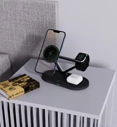 ładowarkaTech-Protect De QI15W-A41 3-in-1 is een moderne en functionele oplossing waarmee je je MagSafe iPhone, AirPods en Apple Watch tegelijkertijd kunt opladen. Met tot 15W draadloze technologie zorgt het apparaat voor snel en handig opladen, terwijl het ingebouwde LED-lampje een slanke look en functionaliteit toevoegt, perfect voor op kantoor of in de slaapkamer.