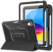 Daarnaast heeft hij een Apple Pencil houder en een uitklapbare standaard zodat je je tablet comfortabel in verschillende hoeken kunt zetten - ideaal om te werken, films te kijken of te internetten. Dankzij de nauwkeurige uitsparingen kun je alle iPad-functies vrij gebruiken zonder dat je de hoes hoeft te verwijderen.