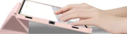Dankzij de accordeonvormige cover aan de voorkant van de case, krijgen we bescherming voor het display en dankzij de technologie voor het wekken en in slaap brengen van het toestel, kunnen we zorgen voor een iets langere batterijduur. De hoes kan ook dienen als standaard voor comfortabeler gebruik van het toestel.