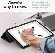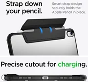 Het hybride ontwerp is een combinatie van transparante en harde PC en flexibele TPU om het toestel aan beide zijden te beschermen tegen mechanische schade.De hoes is voorzien van Air Cushion-technologie voor extra bescherming tegen schokken en stoten. De magnetische klep ondersteunt slaap- en wekfuncties voor een iets langere batterijduur, en een handig klepje voorkomt dat de Apple Pen eruit valt.