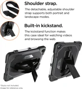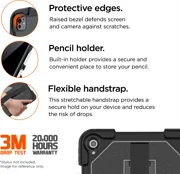 Koffer Eiger piek 4000mEiger Peak 4000m biedt een uitstekende robuuste bescherming voor je apparaat en is ontworpen voor je actieve levensstijl. Uitgerust met een handriem, afneembare kickstand en schouderriem is deze hoes een veelzijdige en praktische aanvulling op je apparaat. De Eiger Peak 4000m Case is ontworpen en getest om een val van 1,2 meter (3,9ft) te weerstaan.Belangrijkste kenmerken
