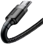 USB - micro-USB-kabel van Baseus met versterkte constructie. Het ondersteunt snel opladen en gegevensuitwisseling tot 480 mb/sec (bijv. met een computer). Met een dubbelzijdige micro-USB-connector hoeven we ons geen zorgen te maken bij het aansluiten van de kabel op het apparaat.De kabel ondersteunt Quick Charge 3.0. De besturingschipset past de stroom aan het apparaat aan en beschermt het tegen beschadiging. Nylon vlechtversterkt de kabel en voorkomt dat deze in de war raakt. Het heeft ook een PVC-afdekking bij de kabelinlaat naar de connectorbehuizing. Inbegrepen is een klittenbandvoor eenvoudige kabelopslag.
