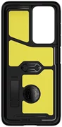 behuizing van de Tough Armor-serie van Spigen is de nieuwe cover van het bedrijf. De tweedelige constructie is gemaakt van slijtvast thermoplastisch kunststof en een versterkend frame van polycarbonaat. In de hoes bevindt zich een vulling in de vorm van een technologisch schuim, dat een extra beschermende laag biedt tegen stoten of vallen van het apparaat.
