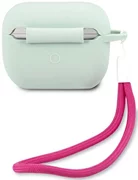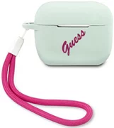 GUESS siliconen hoes. De siliconen hoes beschermt het Apple AirPods Pro draadloze hoofdtelefoondockingstation tegen schade aan het oppervlak en mogelijk verlies. De hoogwaardige siliconen hoes past perfect in de originele AirPods Pro-hoes en voelt uiterst aangenaam aan. Het geheel wordt aangevuld met het kenmerkende Guess-logo, waardoor de behuizing een elegante, moderne stijl krijgt. Aan de zijkant van de hoes zit een praktisch touwtje, waarmee je de hoes bijvoorbeeld een tas of rugzak kunt bevestigen. Collectie: Silicone Vintage Type: AirPods Cover Materiaal: Silicone Kleur: Blauw/fuchsia Compatibiliteit: Apple AirPods Pro Product vervaardigd onder Guess License