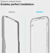 De AlignMaster-serie gehard glas van Spigen voor is met een perfect gesneden aan de voorkant van de telefoon bevestigd met een montageframe, zodat u het perfect op het scherm kunt positioneren. De fabrikant vereenvoudigde de assemblagemethode tot het punt dat deze volledig intuïtief is voor elke gebruiker.