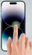 4) Verwijder eventuele luchtbellen door het geheel enkele tientallen seconden stevig aan te drukken in een ronddraaiende beweging. Doe dit zodat de lijmlaag zo stevig mogelijk aan het scherm hecht.