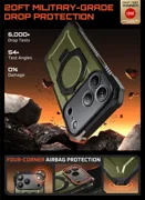 De Supcase UB Grip Magsafe is een hoesje dat duurzaamheid, functionaliteit en een elegant ontwerp combineert. Hij is gemaakt van slagvast TPU-materiaal en heeft verstevigde hoeken die bescherming bieden tegen vallen volgens militaire normen MIL-STD 810G (tot 15 meter). De hoes heeft een militaire stijl die het apparaat een moderne look geeft en het tegelijkertijd beschermt tegen krassen.