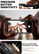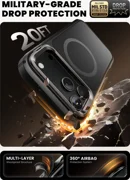 De hoes is gemaakt van hoogwaardig, duurzaam polycarbonaat (PC) en thermoplastisch polyurethaan (TPU). Deze tweelaagse constructie biedt effectieve bescherming, zelfs bij extreme schokken en vallen van hoogtes tot 3 meter. De case voldoet aan de strenge militaire norm MIL-STD 810G 516.6 - dit betekent dat de case de test van 26 keer vallen vanaf een hoogte van 2 meter zonder schade heeft doorstaan.
