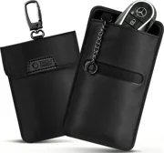 Dankzij het functionele en stijlvolle ontwerp ziet de hoes er elegant uit en met de praktische 360° karabijnhaak kun je de hoes gemakkelijk aan je tas, rugzak of riem bevestigen. Bovendien blokkeert de hoes effectief Bluetooth, Wi-Fi en GPS-signalen, waardoor je in elke situatie volledige privacybescherming hebt.