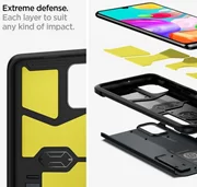 Spigen SGP Tough Armor - gepantserde behuizing met verhoogde beveiliging. Gemaakt van een combinatie van duurzaam en slijtvast TPU-plastic. Daarnaast werd „Air Cushion Corners” -technologie gebruikt, die de telefoon dempt en schokken absorbeert tijdens een val. Het product is perfect op elkaar afgestemd, volledig functioneel, beperkt de toegang tot externe poorten niet en beschermt uw telefoon effectief tegen krassen.De toegevoegde poot heeft niet alleen invloed op het ontwerp, maar bevordert ook het gebruiksgemak, zoals bij het kijken naar films.Tough Armor voldoet aan de MIL-STD 810G-516.6 militaire testnormenKENMERKEN VAN HET PRODUCT:- 100% origineel- Elegant- Precies vervaardigd- Biedt extreme bescherming tegen vallen- Geweldige pasvorm- Volledig functioneel- Eenvoudig te monteren en te demonteren- Verpakt in originele verpakking