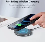 HaloLock heeft een magnetische ring die compatibel is met de MagSafe-draadloze oplader voor snel en eenvoudig opladen.