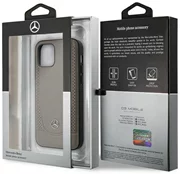 Een uniek hoesje voor Mercedes-Benz-sympathisanten, waardoor je iPhone nog prestigieuzer wordt. Stijlvolle en elegante hoes gemaakt van duurzame, hoogwaardige materialen, levert de high-end High End-look die u van Mercedes-Benz mag verwachten. De hoogwaardige lederen behuizing van echt gedeeltelijk geperforeerd leer is direct geïnspireerd op het Mercedes-Benz-interieur. Het delicate gewatteerde leer en metalen Mercedes-Benz logo garandeert het ultieme gebruikscomfort, klassiek en elegant ontwerp en veiligheid voor je telefoon. - Leren hoesje versierd met metallic Mercedes-logo - Uitzonderlijke geperforeerde afwerking - Elastische en zachte TPU-zijkanten maken eenvoudige installatie mogelijk - Harde achterkant van polycarbonaat is bedekt met een laag echt leer Collectie: New Urban Line Type: Hardcase Materiaal: TPU/PC /Echt leer Kleur: Bruin Compatibiliteit: iPhone 12 mini 5.4" Product vervaardigd onder Mercedes-Benz licentie