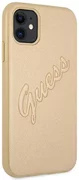 Guess Collection Saffiano Vintage logo. Zorg voor de veiligheid en het unieke uiterlijk van mobiele apparaten, werd een prachtige collectie gecreëerd die indruk maakt met esthetiek, vakmanschap en stijl. Het heeft een elegante, geruite Saffiano-textuur die leer imiteert, versierd met een Guess-logo in reliëf. Saffiano voegt een verfijnde Guess-esthetiek toe aan je iPhone en biedt enige bescherming. Collectie: Saffiano Vintage Type: Hardcase Materiaal: PC/TPU Kleur: Goud Compatibiliteit: iPhone 11 6,1" Product vervaardigd onder Guess License