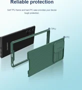Nillkin CamShield Pro is een combinatie van klassiek design en extreem duurzame bescherming. Ingebouwde achterpaneelbehuizing beschermt de lens tijdens dagelijks gebruik. CamShield Pro is een combinatie van slijtvast polycarbonaat en zacht TPU-schokabsorberend frame tijdens de herfst. Een bijkomend voordeel zijn slagvaste airbags die de telefoon beschermen tegen vernietiging. Perfect geschikt, met gratis toegang tot alle poorten en luidsprekers. De hoes is afgewerkt met een antisliptextuur en zacht verhoogde tirades zorgen voor de veiligheid van zowel het scherm als de camera op je smartphone.