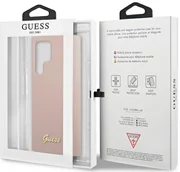 Modieuze en stijlvolle Guesscase uit de boeiende, minimalistische Silicone Script-collectie. De kwaliteit die je in elk detail voelt. Zeer zorgvuldig ontworpen hoes, gemaakt van flexibele siliconen, met microvezel gevoerd middel. Microvezelvulling beschermt het apparaat effectief en de perfect gladde en zachte siliconen maken je telefoon een geweldige plek in je hand. De siliconen collectie biedt duurzaamheid, vakmanschap esthetiek en een perfecte balans tussen minimalisme en functionaliteit. Uitstekende kwaliteit wordt bevestigd door het metalen, gouden Guess-logo. Exclusieve hoes is alles wat je nodig hebt om er stijlvol en modieus uit te zien. Collection: Silicone, scripttype: Hardcase, Materiaal: Silicone, Kleur van het product: Roze, Compatibiliteit: Galaxy S22 Ultra S908. Product geproduceerd onder licentie: Guess.