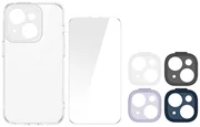 Beschermende Baseus Illusion transparante case, gehard glas en camera frame kit voor iPhone 14 + reinigingsset