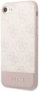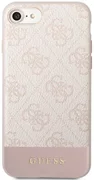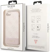 De chique Guess case uit de 4G Stripe collectie wordt gekenmerkt door een elegant, herkenbaar 4G-patroon met het goudkleurige GUESS logo.