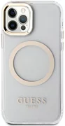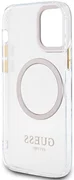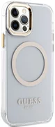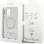De case benadrukt perfect het unieke design van je iPhone, hij is versierd met gouden elementen zoals het frame rond de lenzen, de knoppen en het Guess logo. De case is voorzien van een magnetische ring die compatibel is met de MagSafe draadloze oplader, zodat je hem snel en gemakkelijk kunt opladen. De magnetische ring past perfect bij de kleuren van de hoes.