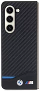 De exclusieve BMW case uit de Leather Carbon collectie is een hardcase gemaakt van een combinatie van polycarbonaat (achterkant) met carbon stof en eco-leder, en randen gemaakt van flexibel polyurethaan, wat bescherming en eenvoudige installatie biedt. BMW staat bekend en wordt gewaardeerd om zijn elegante design en uitstekende afwerking. De behuizing is bovendien versierd met blauwe stiksels, die qua kleur zijn afgestemd op het kleurenpalet van BMW. Het zachte leder, het unieke motief van carbonstof en de stijlvolle details geven de collectie een klassieke, elegante vorm. Het ontwerp wordt gecompleteerd door een klein metalen BMW en M pakketlogo, dat de hoogste kwaliteit en authenticiteit van het product bevestigt.