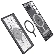 Spigen Ultra Hybrid, een hoesje dat een minimalistisch ontwerp combineert met bescherming van topniveau.De Onetap-versie heeft een ring die compatibel is met MagSafe draadloze technologie.De magnetische ring zorgt voor maximale oplaadprestaties en een snelle en eenvoudige aansluiting op alle MagSafe-accessoires.