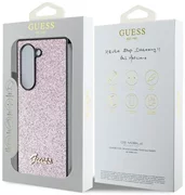 Het onderscheidende kenmerk van deze collectie is de subtiele maar indrukwekkende glitterlaag die een buitengewone glans en unieke textuur aan het hoesje toevoegt. De glinsterende glitter, verwerkt in de coating van de case, geeft het een opvallend karakter, waardoor de telefoon niet alleen een gebruiksvoorwerp is, maar ook een modieus accessoire voor alledag. Bovendien wordt het geheel gecompleteerd door het Guess logo in vintage stijl, dat symbool staat voor de kwaliteit en authenticiteit van het merk.