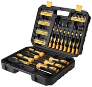 In de set vindt u acht precisieschroevendraaiers die het gemakkelijker maken om kleine apparaten of speelgoed te repareren. De doos bevat ook vijftig bits van 25 L, een bithouder en zes schroevendraaiers. Schroevendraaiers, schroevendraaiers en houders onderscheiden zich door hun ergonomische ontwerp, dat zorgt voor een hoog gebruikscomfort.