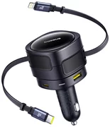Met de Baseus autolader met twee ingebouwde kabels (USB-C en Lightning) en twee extra poorten (USB-C en USB-A) kun je tot vier apparaten tegelijk opladen met een totaal vermogen tot 90 watt. Het geïntegreerde veiligheidssysteem, het draaibare ontwerp en de compatibiliteit met 12-24 volt zorgen voor betrouwbaarheid in elk voertuig.