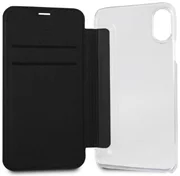 Deze modieuze etui met transparante achterkant is gemaakt van eco-leer en accentueert je dagelijkse, unieke stijl. De binnenkant van de etui verbergt twee vakjes voor creditcards of documenten.
