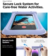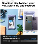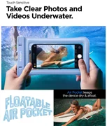 Universele waterdichte beschermhoes voor de meeste mobiele apparaten tot 8,2 inch - met scherm tot 6,9 inchHet ontwerp van de Spigen A610 case is ideaal voor ongebruikelijke situaties zoals duiken of zwemmen. Door de met lucht gevulde randen blijft de case gemakkelijk drijven, waardoor het risico op verlies minimaal is.