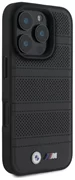 Wat opvalt is het unieke ontwerp dat de exclusiviteit van de collectie perfect benadrukt. De combinatie van glad en geperforeerd leer, verrijkt met elegante stiksels van nylondraad, geeft de hoes een kenmerkende uitstraling en versterkt de geraffineerde esthetiek. De moderne stijl en zorgvuldig geselecteerde texturen maken van de smartphone niet alleen een functioneel maar ook een esthetisch accessoire. De collectie wordt gecompleteerd door een metalen BMW logo en M Power embleem, symbolen van authenticiteit en de hoogste productiekwaliteit.